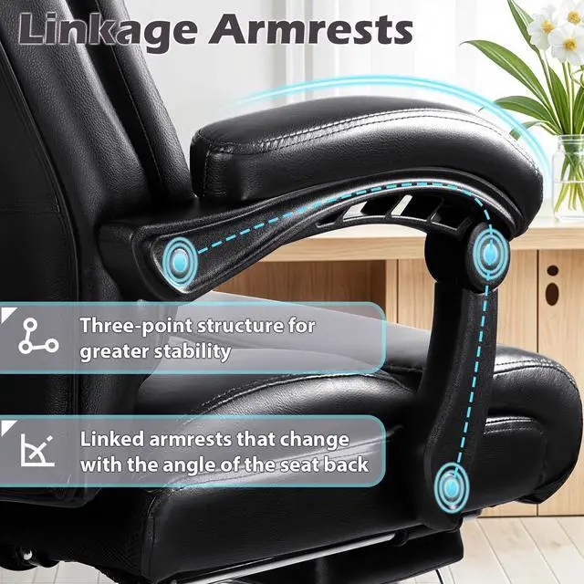Waleaf Office Chair with Footrest,90-165°Reclining Ergonomic High Back Computer Desk Chair Lumbar Support for Home Office