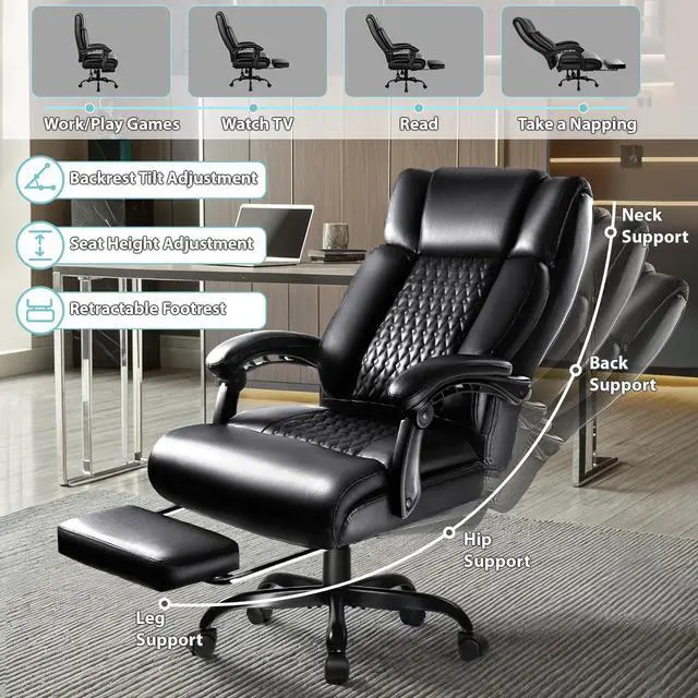 2. Adjustable Recline: The backrest can be adjusted from 90 to 165 degrees, allowing you to find the perfect angle for work, relaxation, or naps.