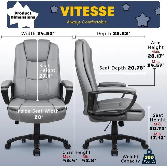 Big and Tall Office Chair fits Every People:Our computer chairs feature a heavy-duty design, larger than most chairs on the market. Equipped with SGS-certified gas lift cylinder, they can support up to 400 pounds. Simple and easy to use, they are suitable for most people.