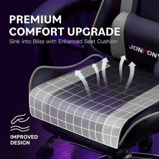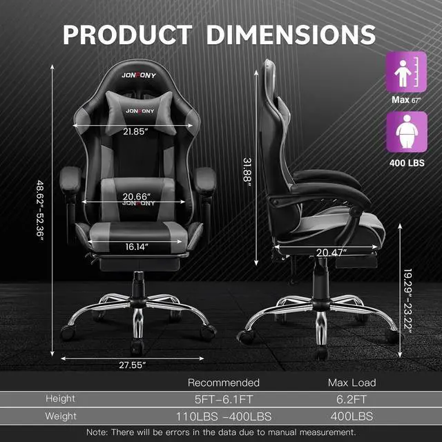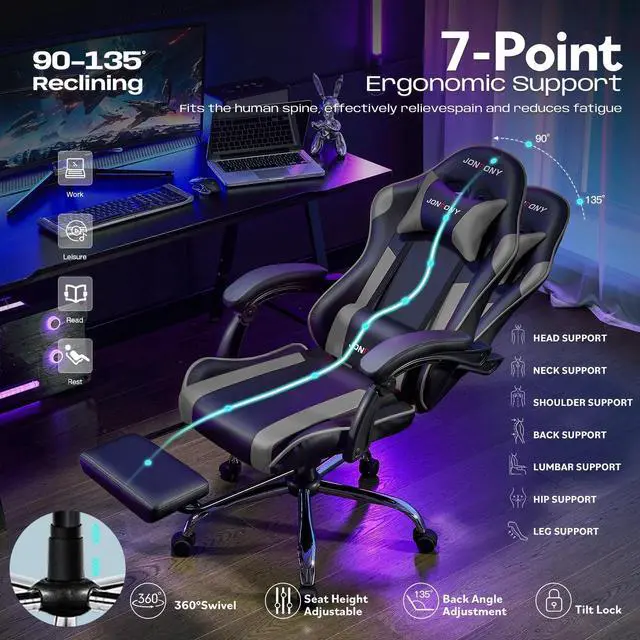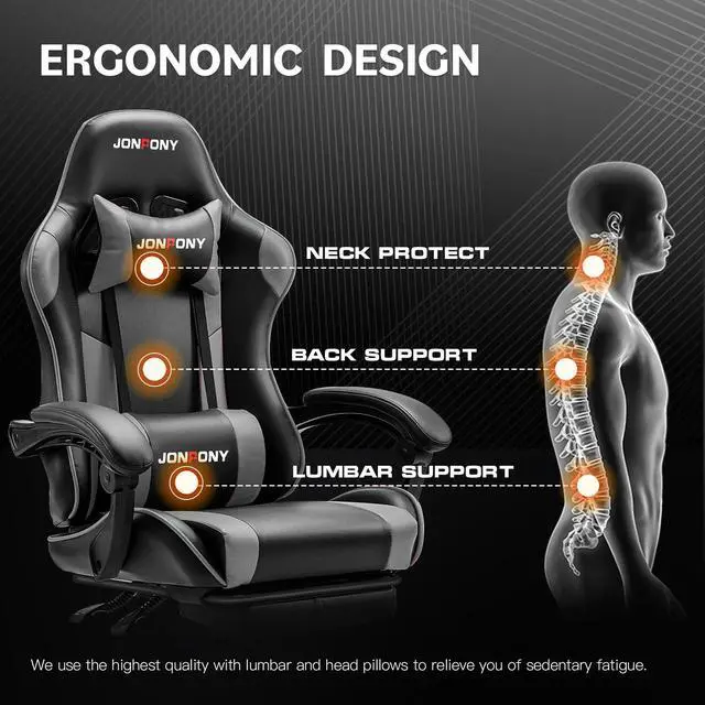 JONPONY Big and Tall Gaming Chair, Ergonomic Design, Gamer Chair PU Leather with Footrest and Lumbar Support, High Back Office Chair Support 8 Hours Long Sitting, Computer Chair