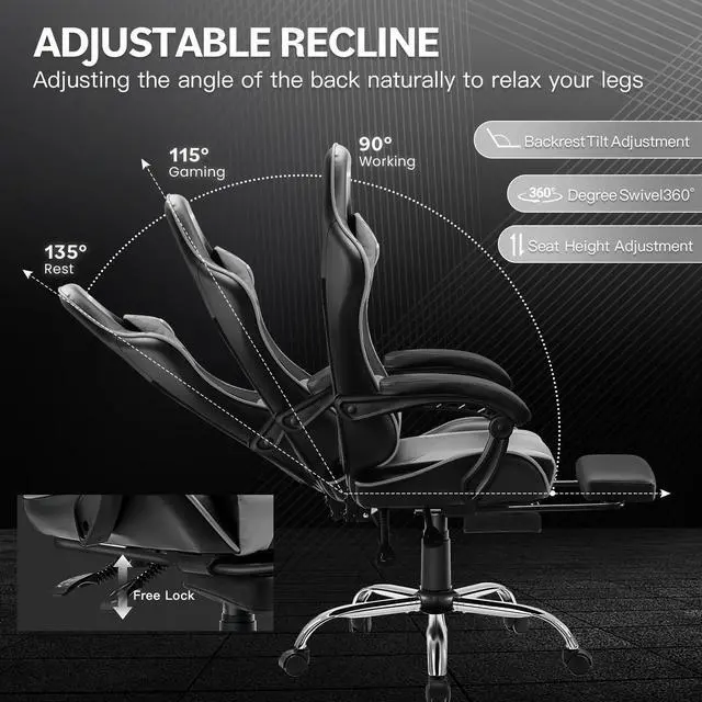 3. Versatile Adjustments: Includes removable headrest and lumbar pillows, a backrest tilt range from 90 to 150 degrees, and a 3.9-inch height adjustment, supported by a robust 3-stage gas lift.