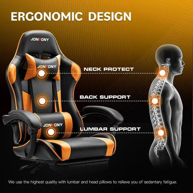 JONPONY Big and Tall Gaming Chair, Ergonomic Design, Gamer Chair PU Leather with Footrest and Lumbar Support, High Back Office Chair Support 8 Hours Long Sitting, Computer Chair Orange
