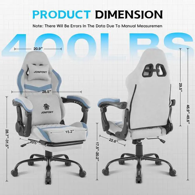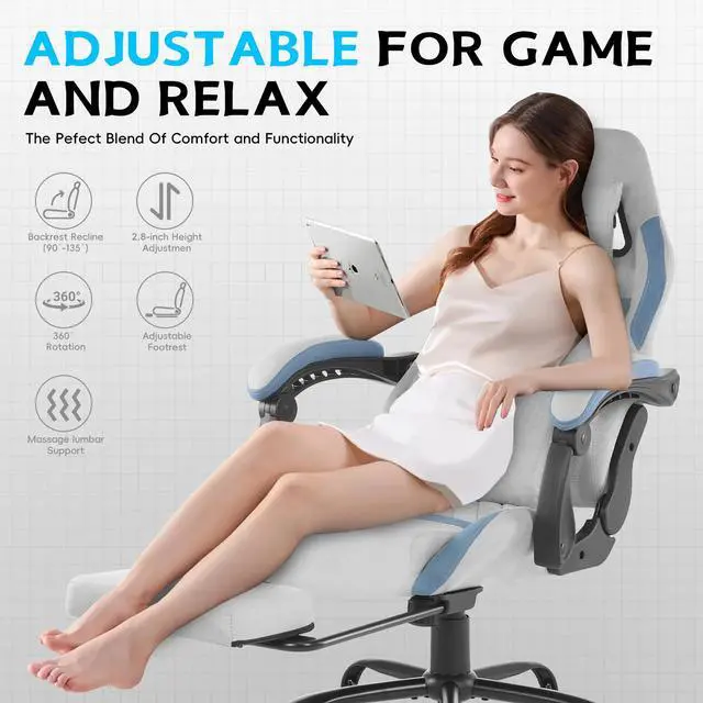 Versatile Application: Ideal for gaming, office work, and studying, providing cervical and lumbar support with an adjustable headrest and massage lumbar pillow.