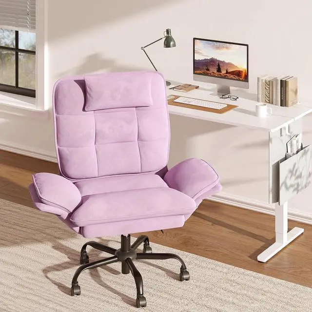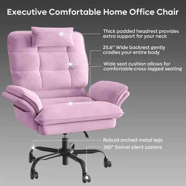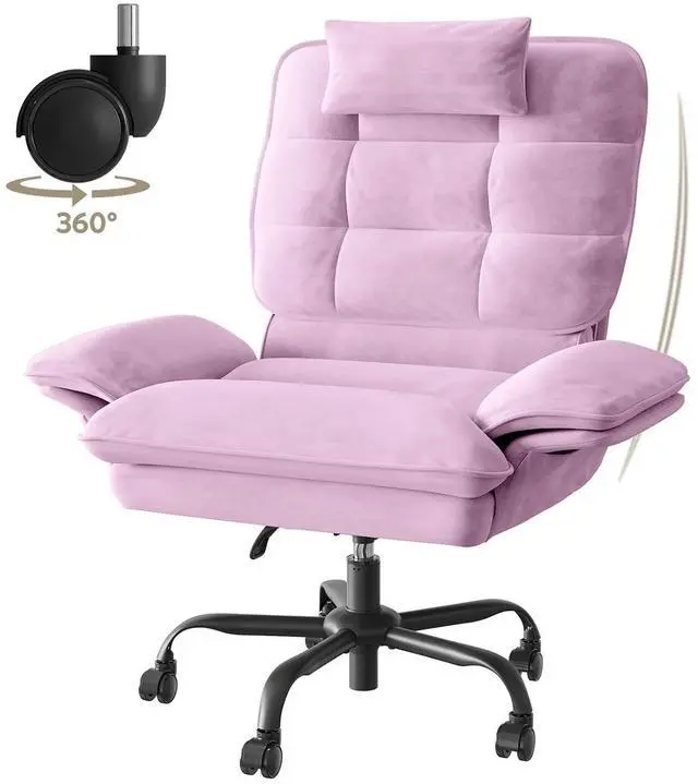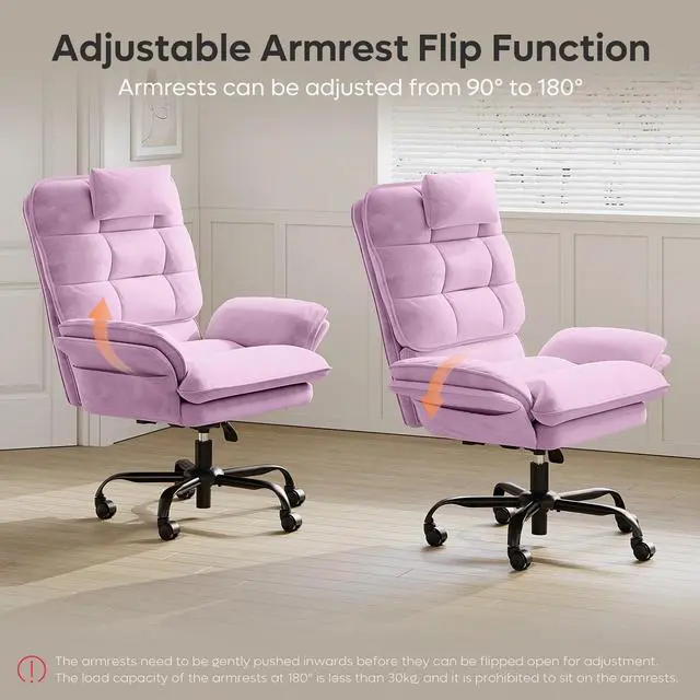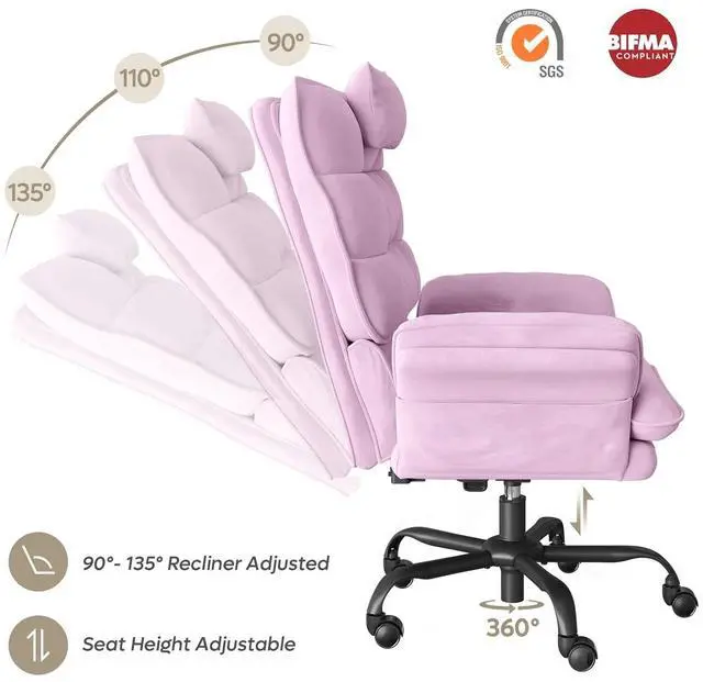 Bestier Big and Tall Executive Office Chair with Flip-Up Arms for Adults, Adjustable Height, Reclining Office Chair with Headrest & Side Pockets in Pink