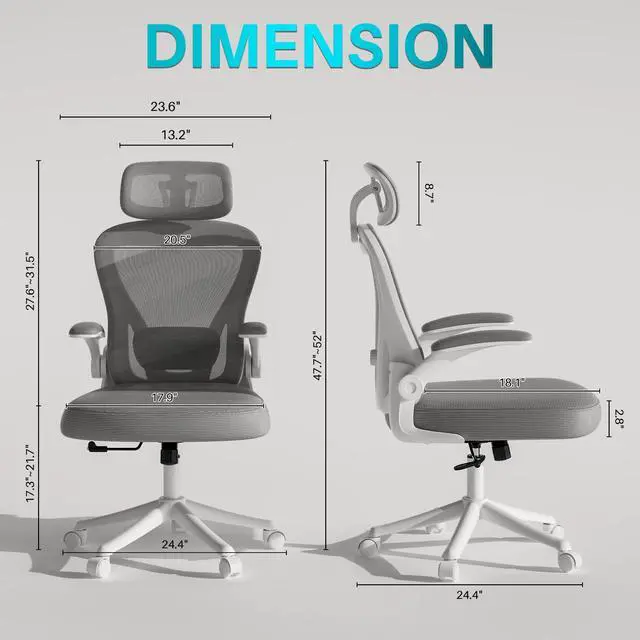 Versatile Design: This swivel desk chair measures 24.4" L x 24.4" W x (47.7" -52")H, with a seat size of 17.9" L x 18.1" W, making it suitable for various settings and users.