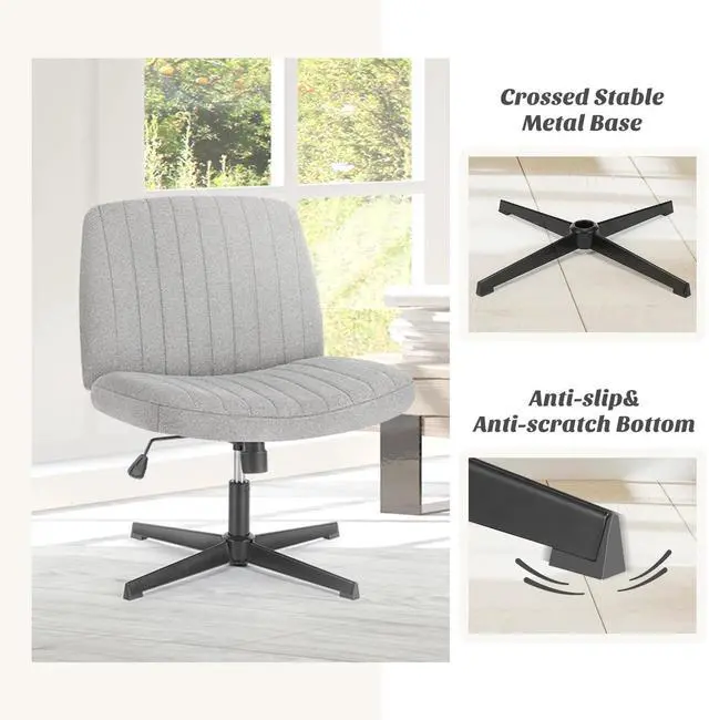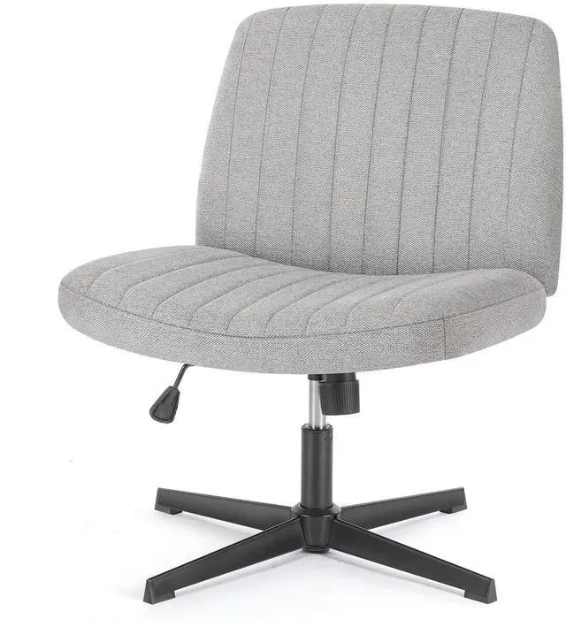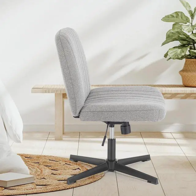 Office Chair Armless Criss Cross Legged Chair No Wheels, Comfy Home Office Desk Chairs, Adjustable Swivel Padded Fabric Vanity Task Computer Chair Linen - Gray