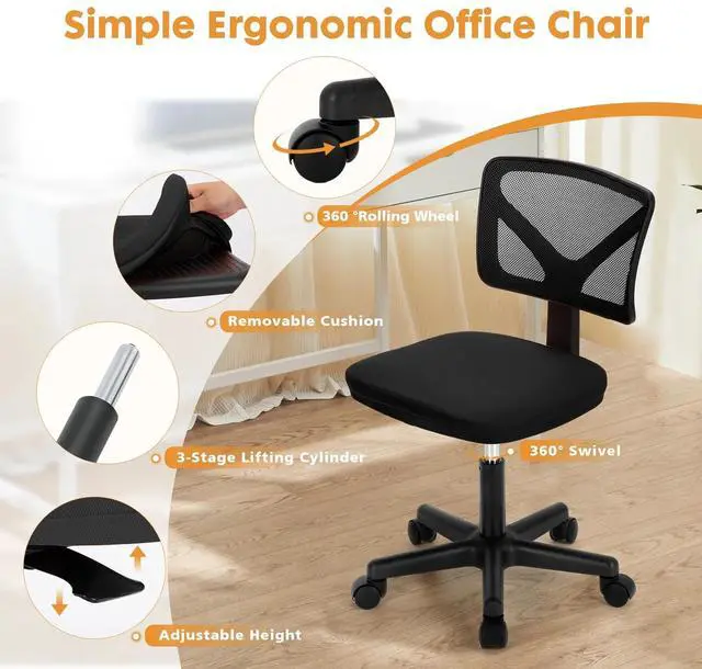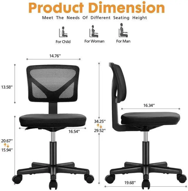Space-Saving Design: This stylish, space-saving CONCETTA Home Office Chair is ideal for small spaces like apartments or dorms, thanks to its armless design.