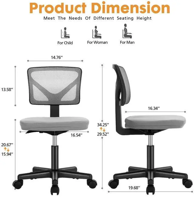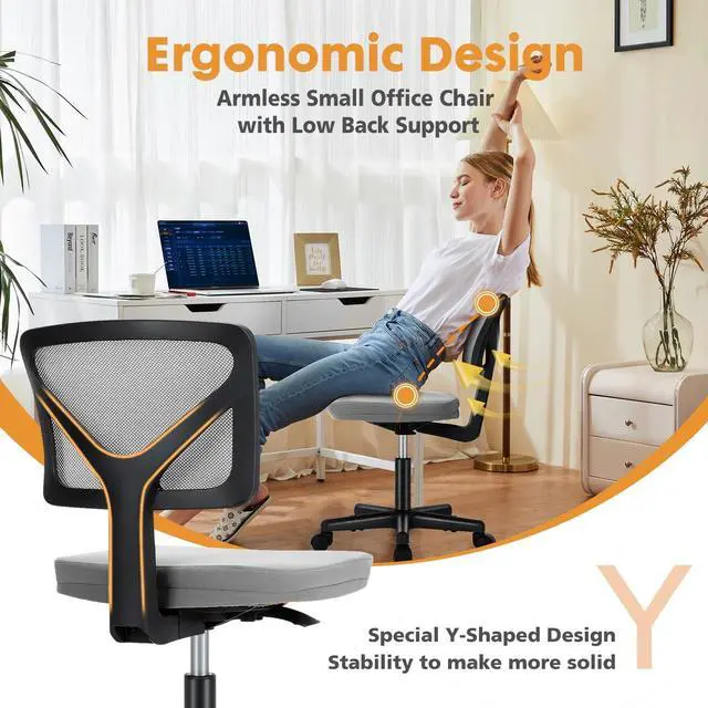 Space-Saving Design: This stylish, space-saving CONCETTA Home Office Chair is ideal for small spaces like apartments or dorms, thanks to its armless design.