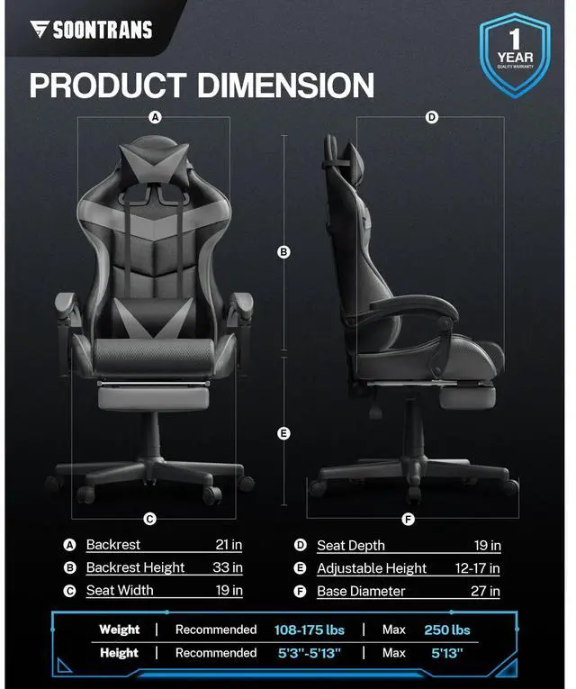 Effortless Quick Assembly: Designed for easy setup in 15-20 minutes with clear instructions, ensuring a seamless addition to any gaming or office environment.
