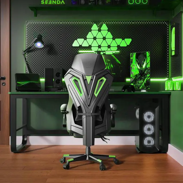 Seenda Massage Gaming Chair, Computer Chair with Mesh Back, Ergonomic Office Chair with Footrest, Reclining Game Chair with Adjustable Headrest and Lumbar Support for Gaming and Office