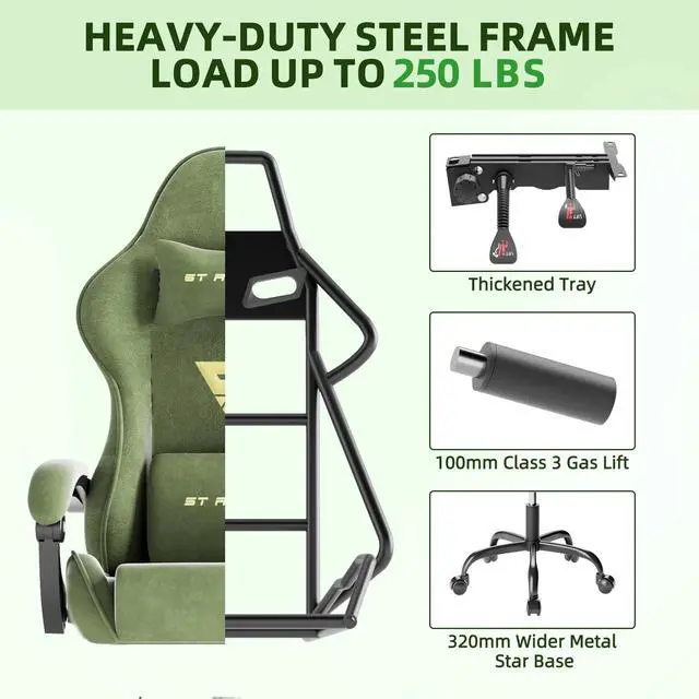 SOONTRANS Gaming Chair for Adult, Velvet Fabric High Back Gamer Game Chair with Footrest, Ergonomic Comfortable Computer Office Chair with Massage Lumbar Cushion, Reclining Leather Desk Chair,