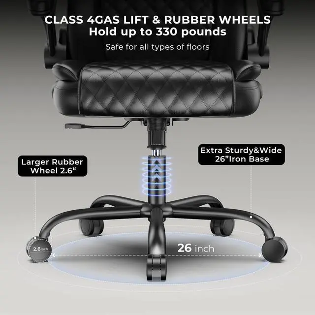 Robust Construction: Designed for larger and taller individuals, this chair supports up to 330 lbs with a sturdy metal base and a BIFMA and SGS certified Class 4 gas lift cylinder for safety and durability.