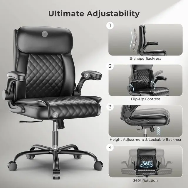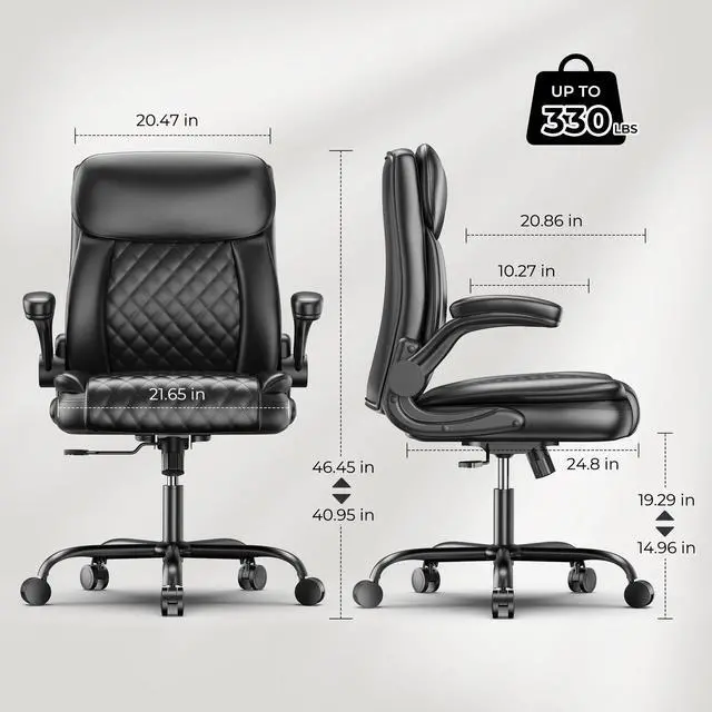 Seenda Big and Tall Office Chair 330lbs, Heavy Duty Executive Desk Chair with Extra Wide Seat, High Back Ergonomic Leather Computer Chair with Padded Armrests