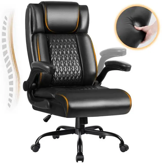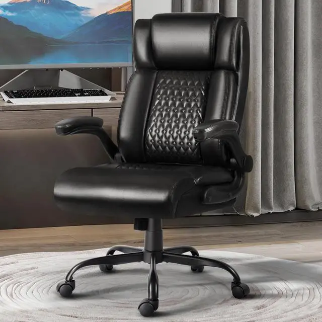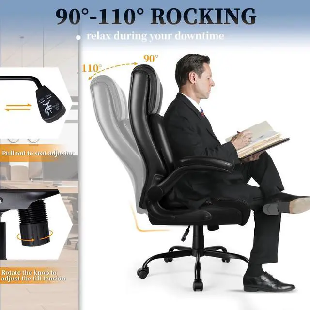 - STURDY & STYLISH: Our executive office chair frame is made of high-strength alloy material with a thickened 5-star base and 360° swivel wheels for sturdy load capacity. Tilt function with position lock and 110° backrest adjustment, clean and smooth lines, stylish and elegant modelling, suitable for a variety of office environments, perfect for home, office and boss desk!