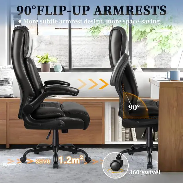 - ADJUSTABLE FLIP-UP ARMREST: This 90°flip-up armrests can be easily lifted to cater for your different office postures. Whether you lower the armrests for intense typing or raise them for stretching during breaks, you can adjust them to suit your needs. With smooth-running wheels, it saves space in your office and creates a comfortable office experience for you to enjoy.