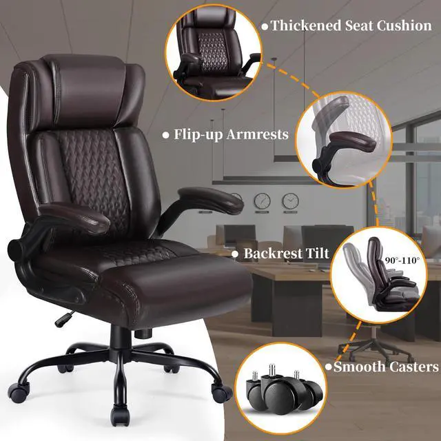 - STURDY & STYLISH: Our executive office chair frame is made of high-strength alloy material with a thickened 5-star base and 360° swivel wheels for sturdy load capacity. Tilt function with position lock and 110° backrest adjustment, clean and smooth lines, stylish and elegant modelling, suitable for a variety of office environments, perfect for home, office and boss desk!