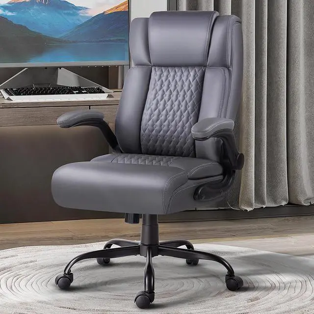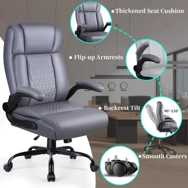 - STURDY & STYLISH: Our executive office chair frame is made of high-strength alloy material with a thickened 5-star base and 360° swivel wheels for sturdy load capacity. Tilt function with position lock and 110° backrest adjustment, clean and smooth lines, stylish and elegant modelling, suitable for a variety of office environments, perfect for home, office and boss desk!