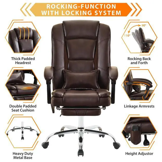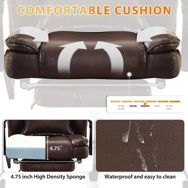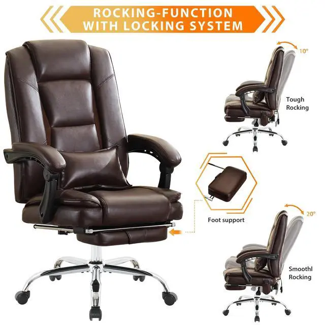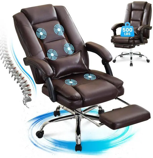 JONPONY Big and Tall Office Chair 500LBS Executive Office Chair Massage and Footrest Ergonomic Computer Desk Chair Reclining High Back Leather Office Chair Lumbar Back Support Swivel Rolling,Brown