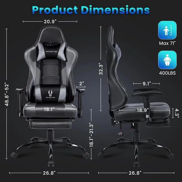 FULLY CUSTOMIZABLE DESIGN This racing-inspired gaming chair is designed with every detail adjustable to perfectly match your body shape and stature. You have the flexibility to modify the chair's height, the angle of the backrest, as well as the position of the footrest. These adjustment features are straightforward to operate and can be easily fine-tuned, offering you an unparalleled degree of personalization.