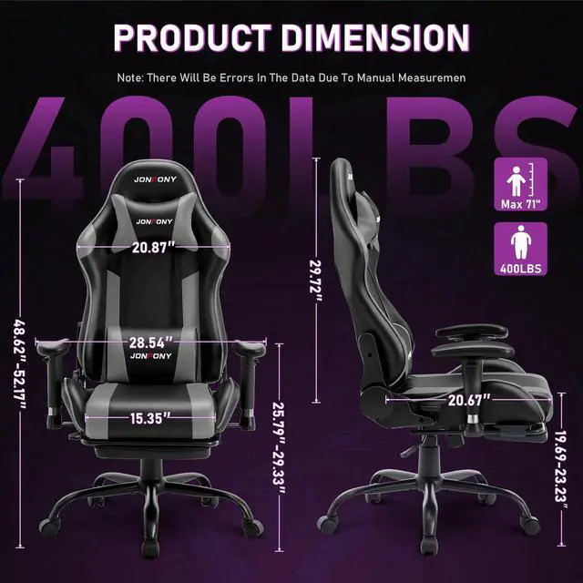 Wide Applications: JONPONY gaming chair is an ideal seat of choice for working,studying and gaming. Its versatile design and ergonomic features make it suitable for long hours of sitting, whether you're tackling a demanding work project, delving into academic studies, or immersing