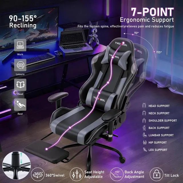 Wide Applications: JONPONY gaming chair is an ideal seat of choice for working,studying and gaming. Its versatile design and ergonomic features make it suitable for long hours of sitting, whether you're tackling a demanding work project, delving into academic studies, or immersing yourself in intense gaming sessions. With its adjustable features and durable construction, the Jonpony racing gaming chair provides the comfort and support needed for prolonged use across different settings.