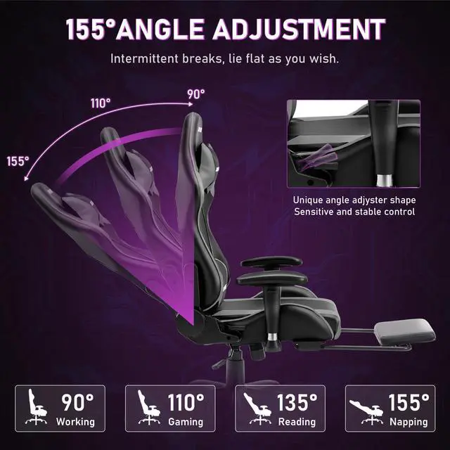 Multifunctional Design: The chair comes equipped with adjustable armrests and seat height, enabling you to tailor it to your preferred ergonomic position for optimal comfort and support. Moreover, its wide reclining range allows you to unwind during breaks. The 360-degree swivel capability enhances flexibility, making it effortless to navigate and reach various parts of your workspace or gaming area without exertion