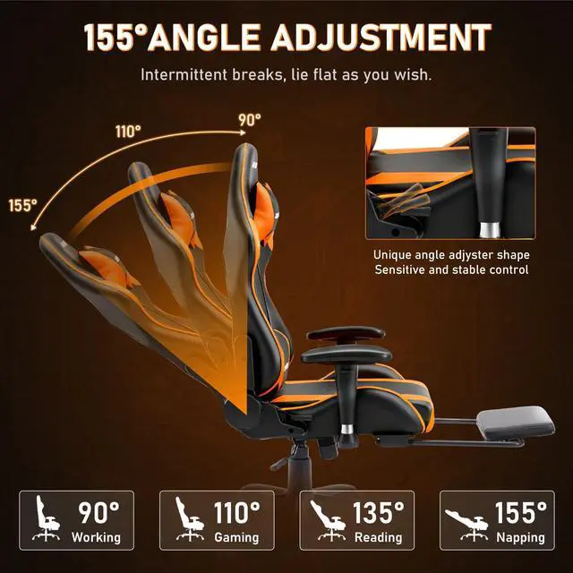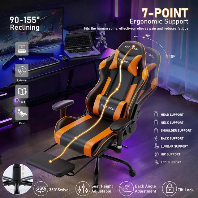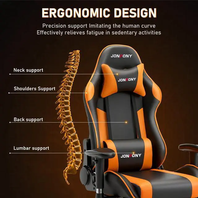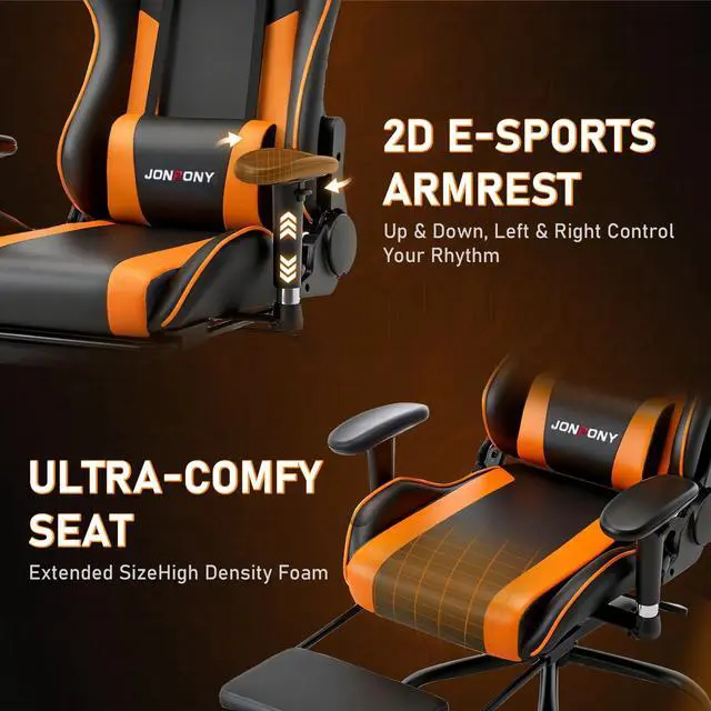 JONPONY Game Chair,Ergonomically Designed Computer Chair with headrest and 2D Armrests,with Footrest and Lumbar Support,High Back Office Chair Support 8 Hours Long Sitting,Computer Chair,ORANGE