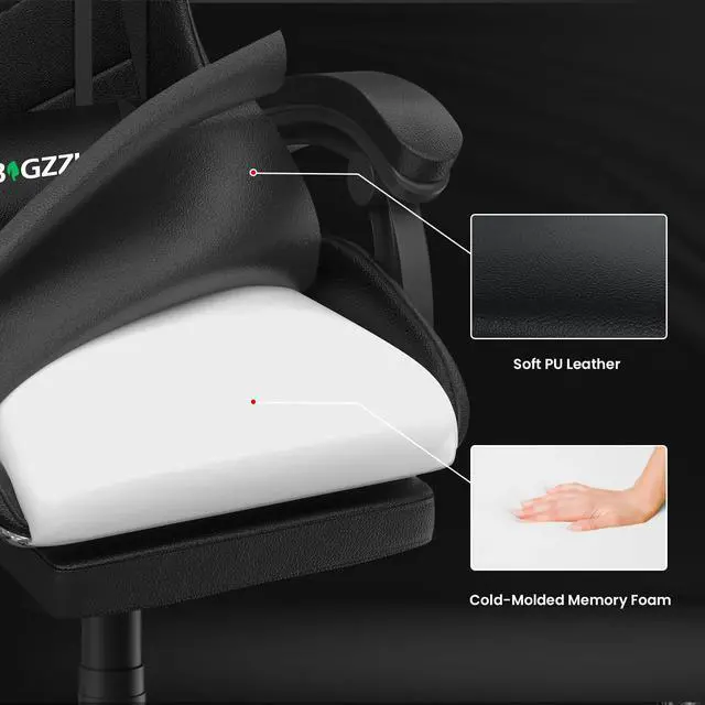 - This Bigzzia gaming chair is wrapped in leatherette and carbonfiber in a sleek, race-inspired shape, providing immersive gaming experience.