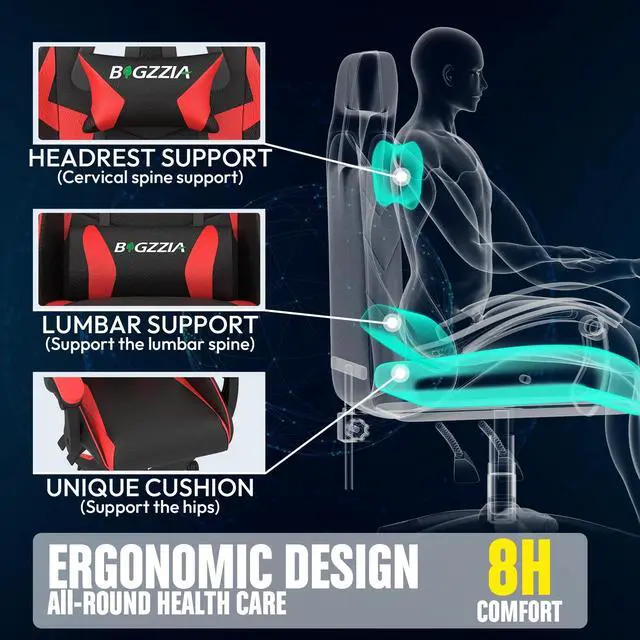Comfortable Heated Cushion: Our gaming chair with heat cushion is specially designed for sedentary people who are prone to low back pain. Adjustable heating function accelerates fatigue relief and is ideal for winter use. This gaming chair uses a wide wingless cushion design, giving sillas gamer plenty of space to stretch legs and say no to squeezing and constriction.