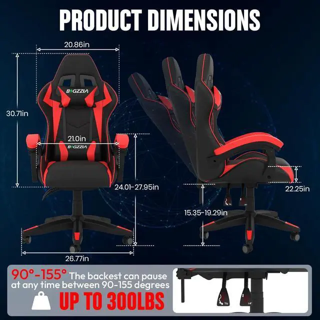 Multi-Functional Ergonomic Gaming Chair: Our video game chair with adjustable headrest and lumbar pillow to provide better support. 90-155° reclining backrest and linkaged armrests, can meet your different need. 4 inch adjustment Height , 360° swivel nylon wheel ensure freedom move.