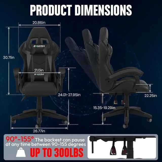 Sturdy and Stable Base: The BIFMA certified heavy duty base provides a sturdy foundation for a gaming chair that can support up to 300 lbs capacity.Low-noise and durable nylon wheels roll easily can effectively protect the floor from wear and reduce the noise generated during movement.
