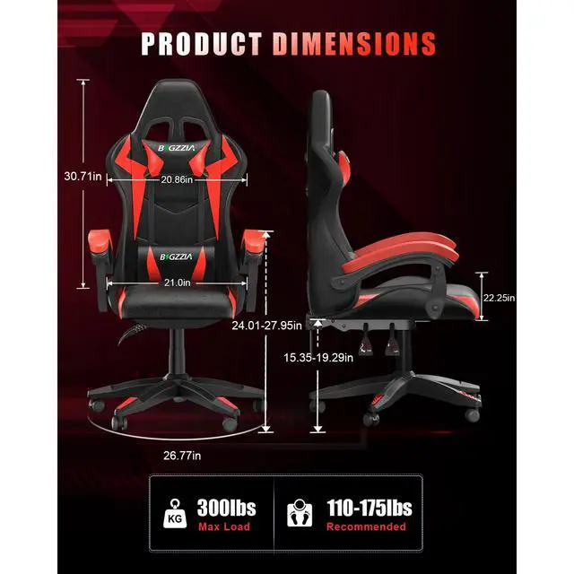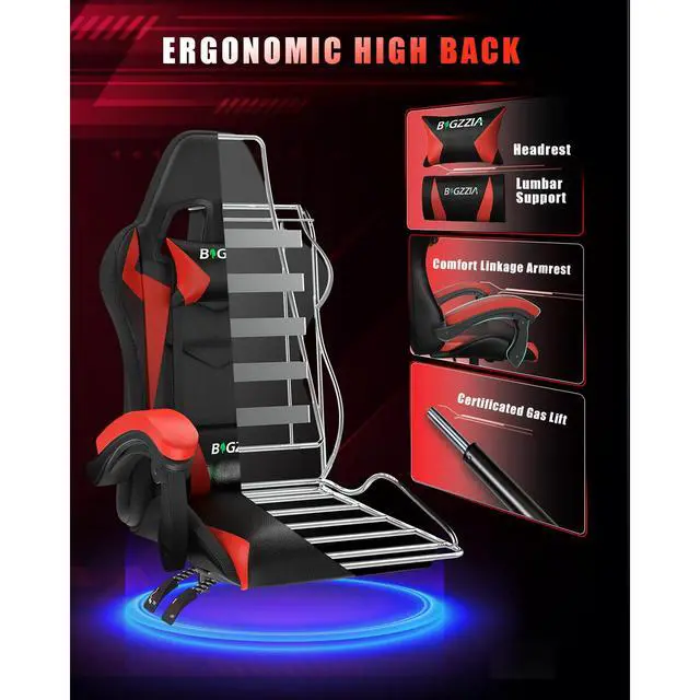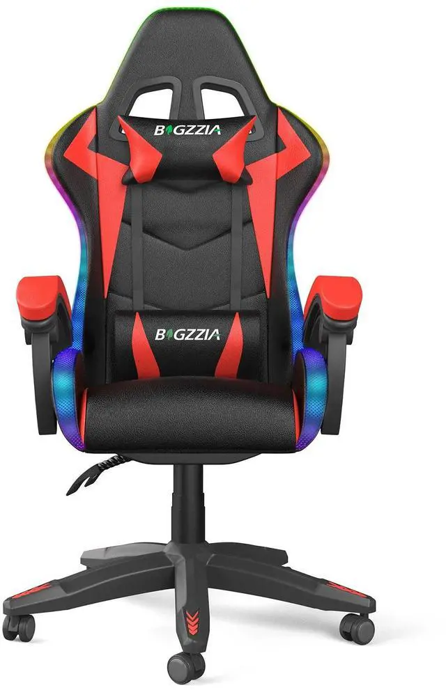 Bigzzia Gaming Chair with LED Lights,Ergonomic Office Computer Chair with Headrest Support, PU Leather, Height Adjustable, 360° Swivel, Suitable for Adults and Kids, Red