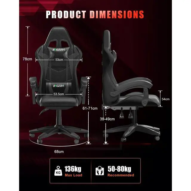 Bigzzia Gaming Chair with LED Lights,PU Leather Office Chair with Headrest Support, Height Adjustable, 360°Swivel,Black