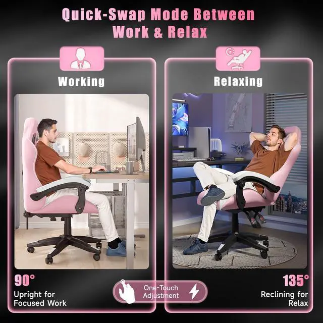 9. Office chair are designed with human-oriented ergonomic construction that lasts long, and gaming chair have heavy-duty metal base which pass the BIFMA with 360-degree swivel and nylon smooth-rolling casters, rolling 100000, have great stability and mobility. Computer chair gaming chair office chair desk chairs.