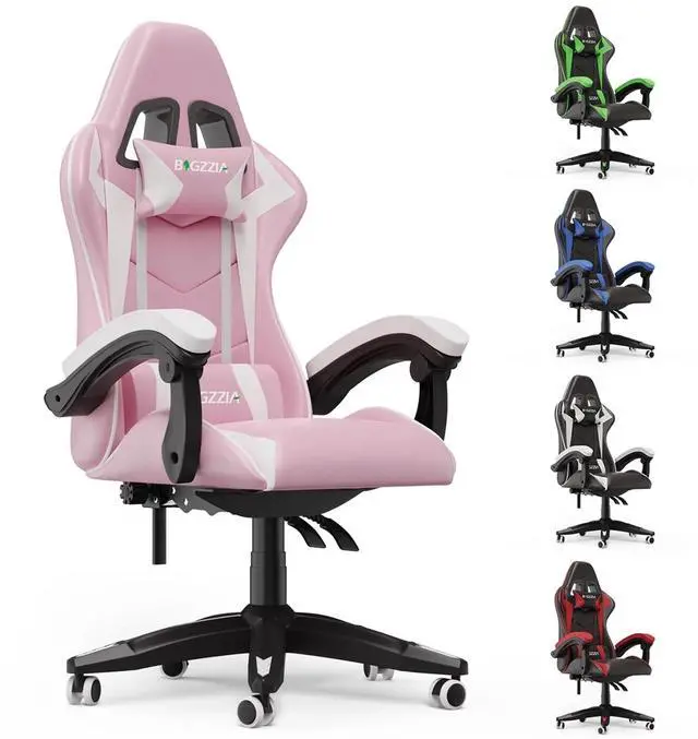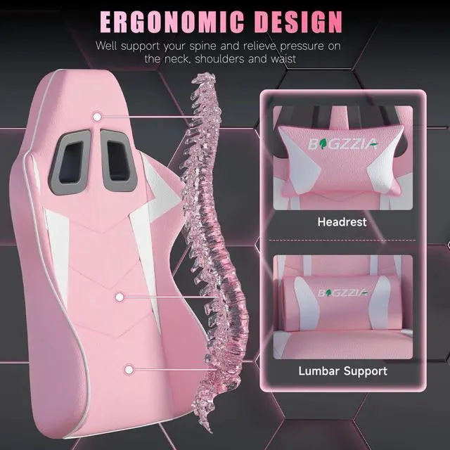 Bigzzia High-Back Gaming Chair Computer Racing Chair with Headrest and Lumbar Support for Back Pain, Pink