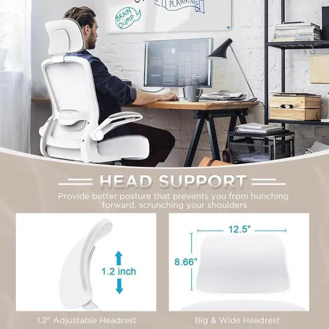 [! ] Designed to maintain a natural S-curve in your spine, reducing back pain and fatigue. Our adjustable lumbar support adapts to your movements, minimizing strain on the lumbar discs. The adjustable headrest prevents you from hunching forward, scrunching your shoulders.,!