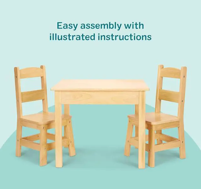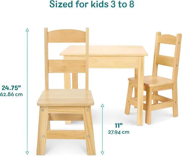 3-Piece Solid Wood Set: Includes 1 solid wood table & 2 durable chairs with 11-inch seat height, with additional chairs sold separately so up to 4 kids can share the space for creative projects or meals.