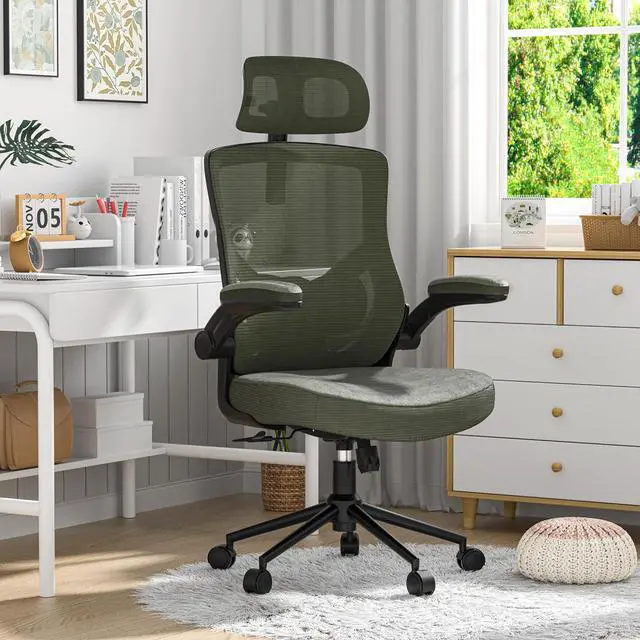 Adjustable features - CYKOV ergonomic office computer chair has adjustable features such as 4' ' height, 90°-135° tilt, and reclining, and 6 headrest adjustment, 90° flip-up armrest allowing you to customize the home office desk chair to your preferences and needs.