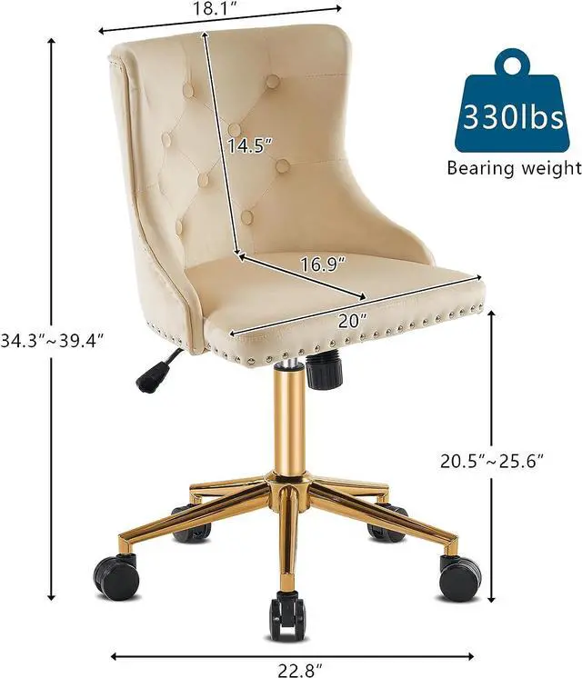 Sturdy ConstructionUsing a heavy-duty metal base plus a premium hydraulic lifer (maximum capacity weight 330 lbs), our velvet desk chair is lasting for long-term usage. Should you receive our products with any problems, our team always stands by for you.