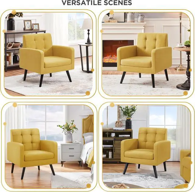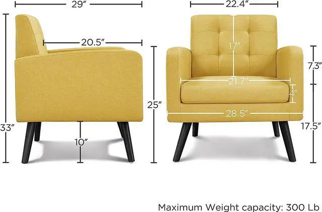 Modern Design: With the stylish and modern design, the fabric armchair gives your room a retro feel with the modern shape and adds a touch of elegance to your room. Strong lines and a modern style, both create a favorite lounging spot
