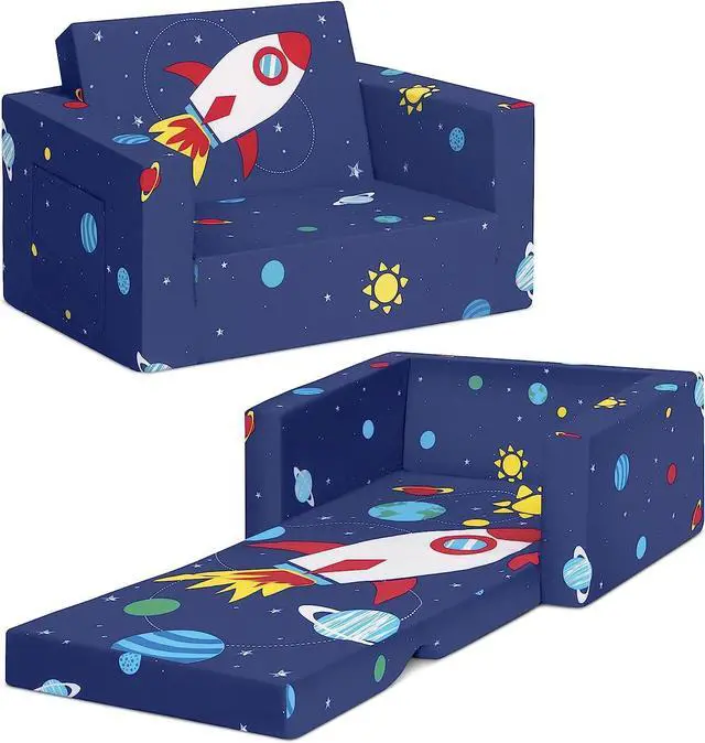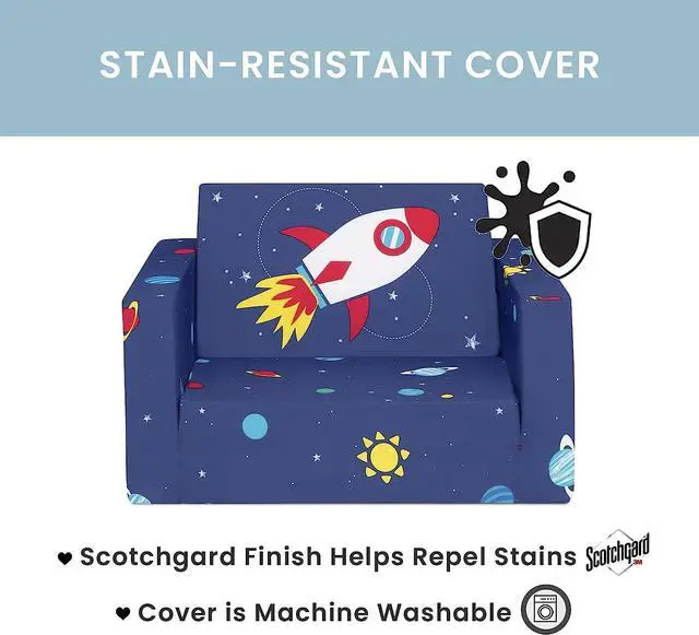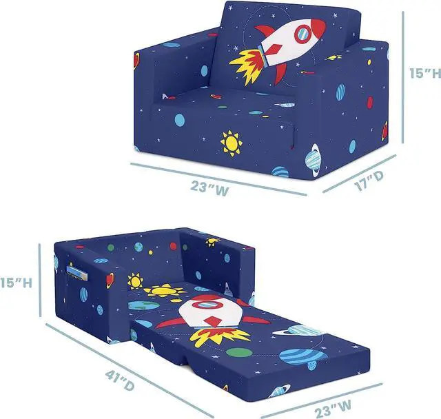 DESIGN: This flip-open chair converts to a lounger/sleeper| Ideal for reading, relaxing, playing or sleeping, your child will enjoy this chair with siblings/friends | Recommended for ages 18 months+ | Fits 1 to 2 small children