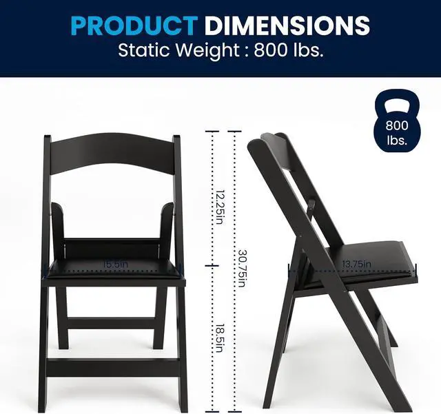 EASY TO STORE: Each chair measures 17.5 " W x 18" D x 30.75 " H when open and 17.5 " W x 2.25 " D x 35" H when folded with no assembly required; chairs stack for compact storage after use
