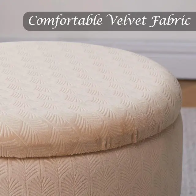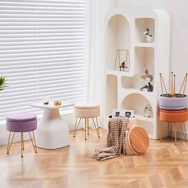 Hidden Storage SpaceW: hen the cover of the storage ottoman is lifted, a hidden surprise storage space revels in collecting your favorites. This round velvet storage stool has a large storage space, can be used to store toys, magazines, small objects, perfumes and cosmetics. Spacious space makes you get rid of the trouble of organizing clutter