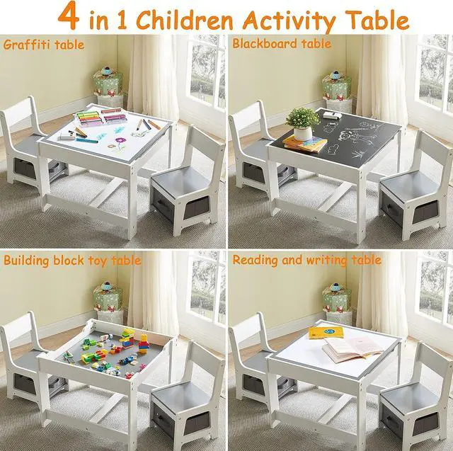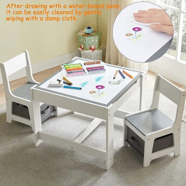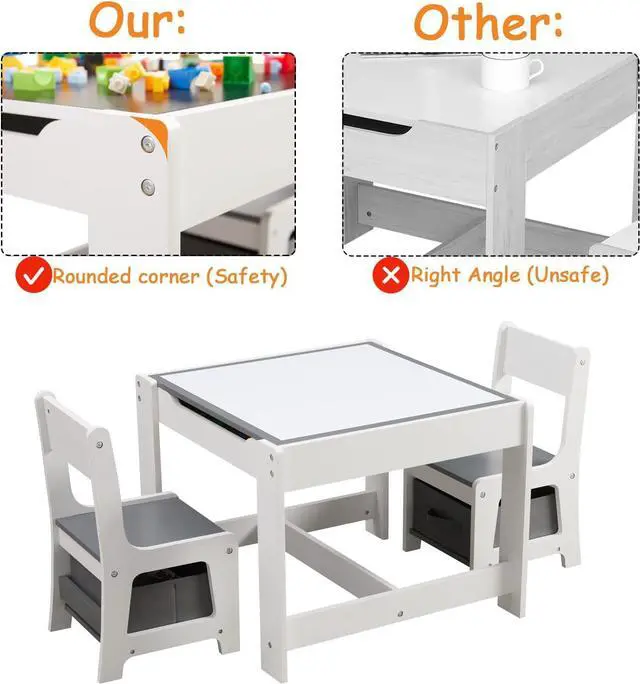 POWERFUL STORAGE - The bottom of the chairs have removable collapsible fabric drawers for storing child' s toys, books, crayons, etc. The large storage compartment inside the table can also be used to store building blocks, etc. Wide flip up groove is convenient for parents to remove and convert. After activities, just move the chairs under the table compactly.