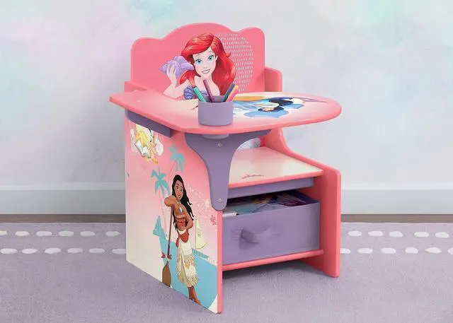 FOR DISNEY PRINCESS FANS: This fun chair desk features colorful graphics of Ariel, Jasmine, Belle, Moana and Rapunzel; Ideal for homeschooling or remote learning