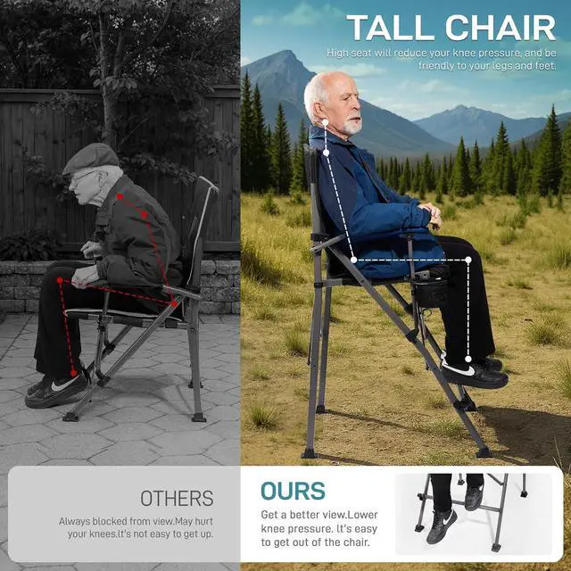 FOLDABLE & PORTABLE: EVER ADVANCED tall camping chair can be folded and put into the attached bag. It fits into the trunk of most cars. It can be easily taken to camping, courtyards, lawns and playgrounds.