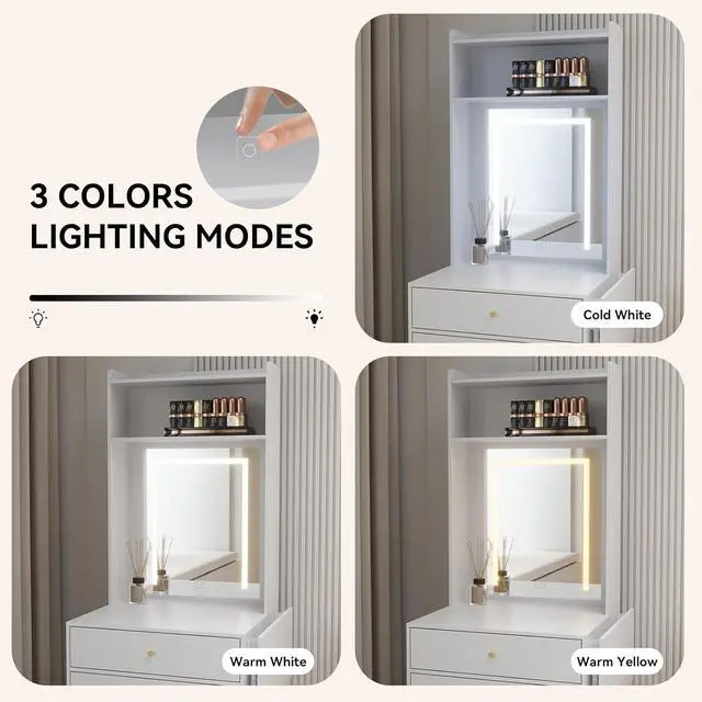 Adjustable Makeup Mirror: You can switch between natural, warm and cold light of this mirrored vanity table. Choose different lights according to different scenes and different makeup