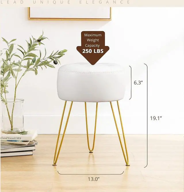 Sturdy & Space-Saving Design: Built to last with a solid 3-leg metal base, each reinforced with three bolts for maximum stabilitysupports up to 250 lbs. The tufted seat evenly distributes weight, providing all-day comfort. Compact dimensions (13" D x 19.1 " H) fit snugly in small spaces, while the ideal height pairs perfectly with most tables.