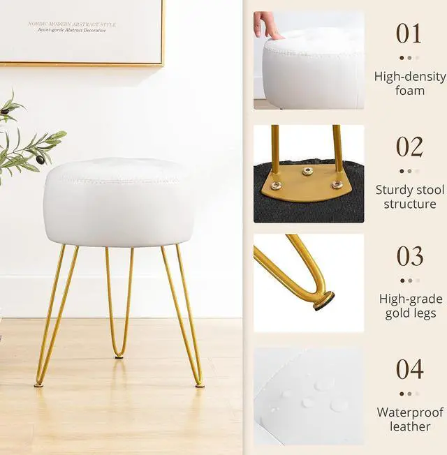 Versatile for Any Room: More than just a vanity stooluse it as a footrest, bedroom accent, or chic ottoman! Upholstered in premium faux leather, its mid-century modern design blends seamlessly with any decor, whether in your dressing room, bathroom, living room, or office.