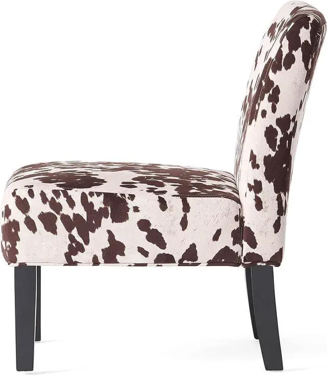 Enjoy this fun Cow Print dining chair at your next dining party. Featuring brown and white spotted Cow Print designs, this chair is sure to delight. This Sturdy chair, features plush cushioning Throughout and is sure to have your guests dining in comfort